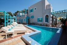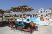 First (A') class rented rooms 15 meters from the gifted beach on the cosmopolitan Kamari of Santorini, next to the coastal foot-walk, with view to the sea and to the marvellous sunrise, at a small distance from Ancient Thira.