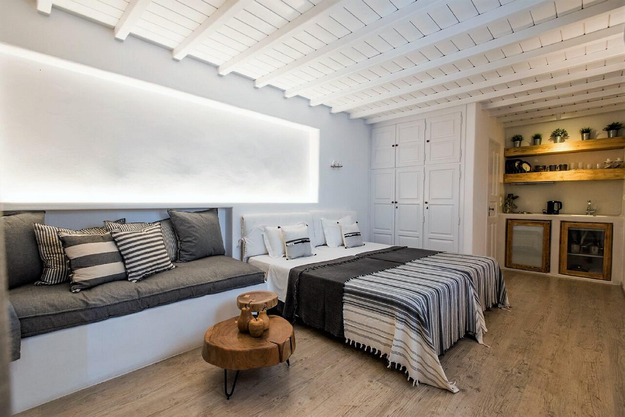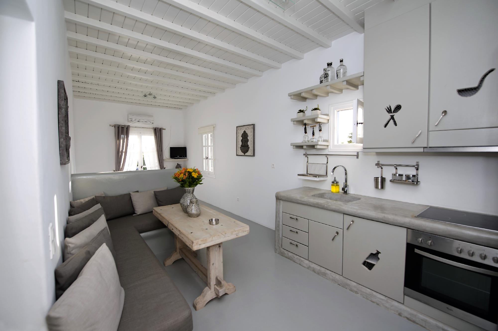 The MYKONIAN STUDIOS are located in Ano Mera 7km distance from the centre of the town. You can easy reach, (1km) the beaches Kalo Livadi, Kalafati, Elia and Lia and the traditional square of Ano Mera. There you can find many traditional tavernas, super market and pharmacy.