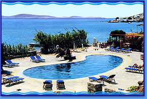 Agios Ioannis Beach Resort is located on the magnificent Agios Ioannis bay, overlooking the ancient island of Delos. It is 4km from Mykonos town. Local bus service provides easy access to and from the center. Our bus service is available from the airport and the seaport upon arrival and departure. With the beautiful white sandy beach and crystal clear waters only 10 meters from the hotel, we offer a chance to enjoy many water sports. Beach chairs and umbrellas for relaxing, together with an unforgettable sunset will make your holiday a memorable one.