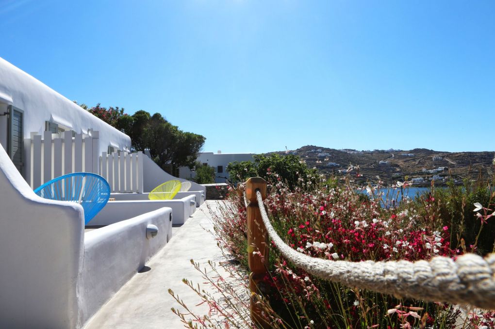 By a blossomed garden, the Cycladic-style Aelia Mykonos is located in Ornos Village of Mykonos. It offers air-conditioned accommodation with free WiFi access and views over the Aegean Sea.