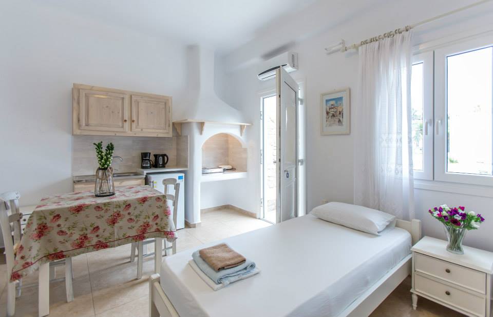 Anais is a Residence of 22 apartments in Mykonos island, at 800m from the city centre, with A/C,safety deposit box, TV, free Wi-Fi, private bath, kitchen, terrasse with a garden view only and free parking place.