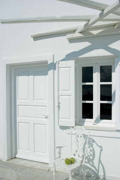 Cycladic style furnishings, gourmet kitchens including all necessary cutlery, crockery and bar fridge. Good size bathrooms with walk in marble showers. Remote Air Conditioning, direct dial phone, in-room electronic safes, flat screen LCD TV (Greek channels), iPod base, stereo HI-FI music system. Both suites have a distinctive style.