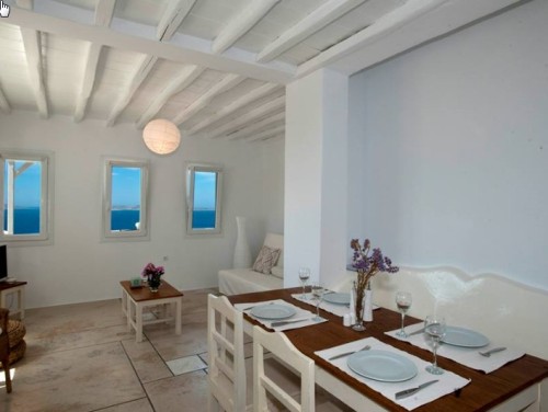 Here, you will enjoy the most amazing view and beautiful sunsets of the island from the large windows and the terraces that overlook the Aegean Sea, Mykonos Town and the surrounding Cyclades islands.