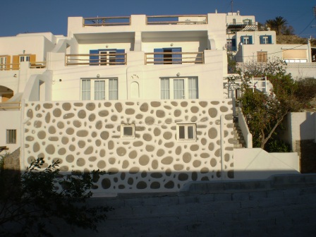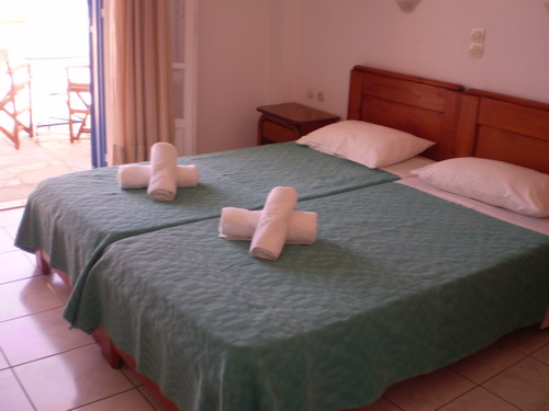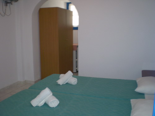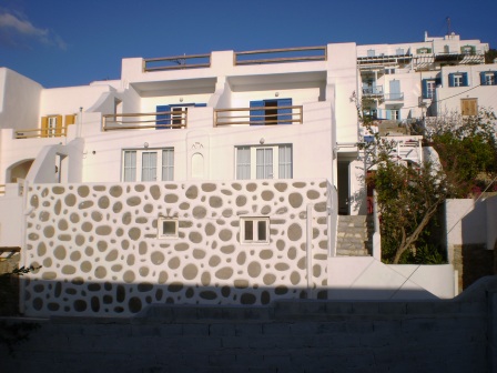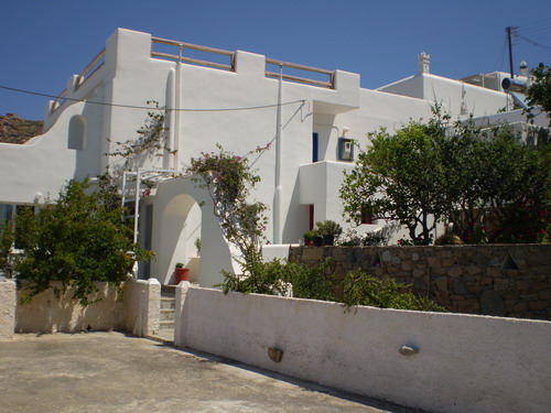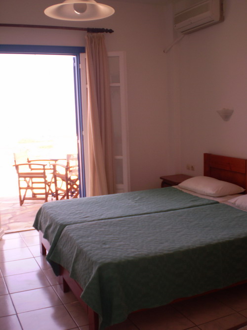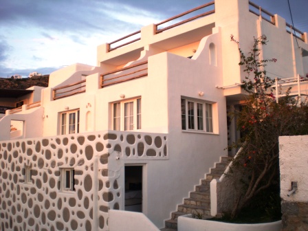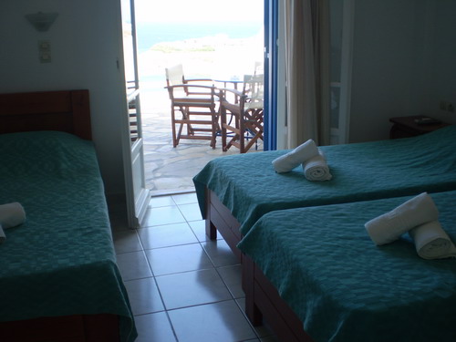 Having a great view at the sea and Mykonos town our "three key" (A CLASS) comfortable rooms are equipped with W.C..bath or shower,refrigerator, air condition and T.V.