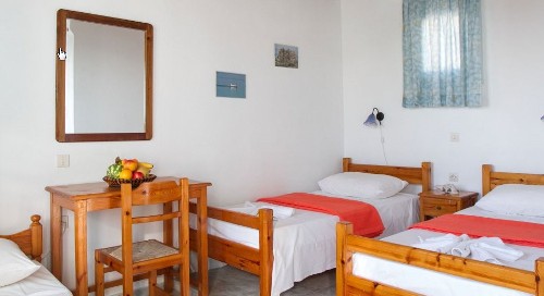 Pension Maria is located at the Tourlos region, just 20 meters from the beach, and 15 minutes from Chora, on feet. The Pension discriminates for its special Cycladian Architecture, its hospitable environment and the logical prices. Is the ideal environment for the family, but also for the young people.
