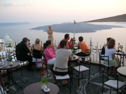 Multicultural meeting point and the most famous terrace at the most central point of Fira.