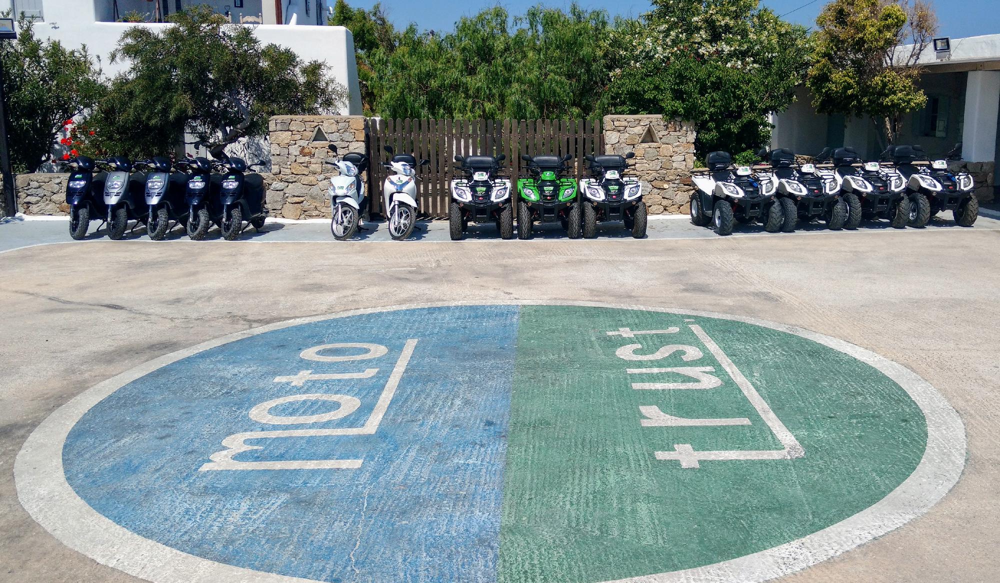 The Mykonian Car & Bike rental company.