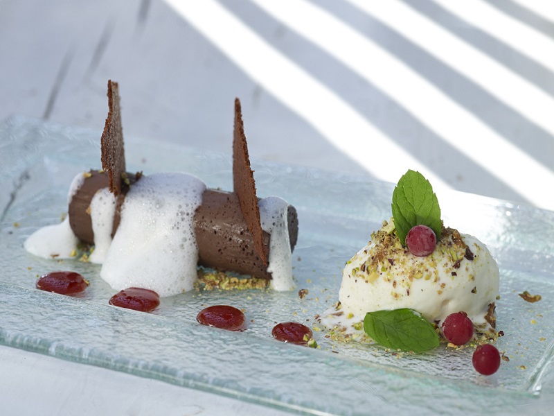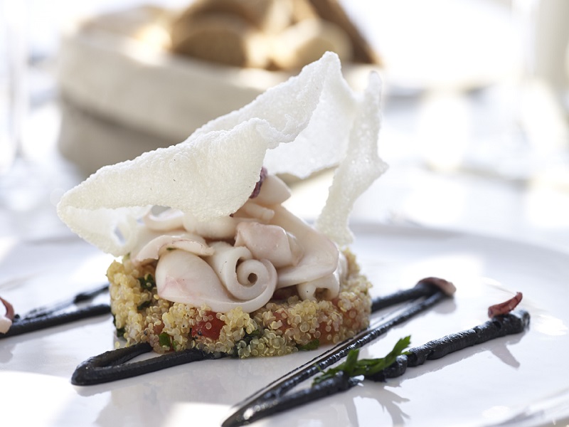 FEATURES DISHES: - Lamb roasted with cumin and tomato, cigar smoker eggplant and sauce of yogurt with lime - mousse carrot with sausage with fennel and grilled wild mushrooms - Green salad with graviera Zakynthos - squid grilled with mashed pumpkin - Cous cous with roasted tomatoes and cream roe.