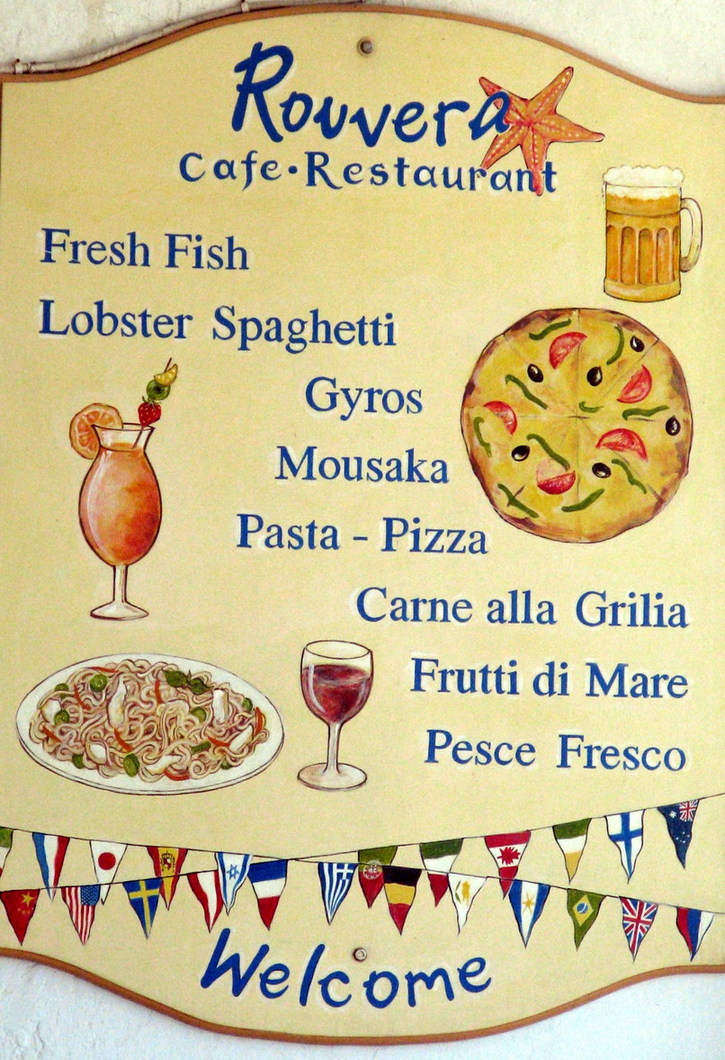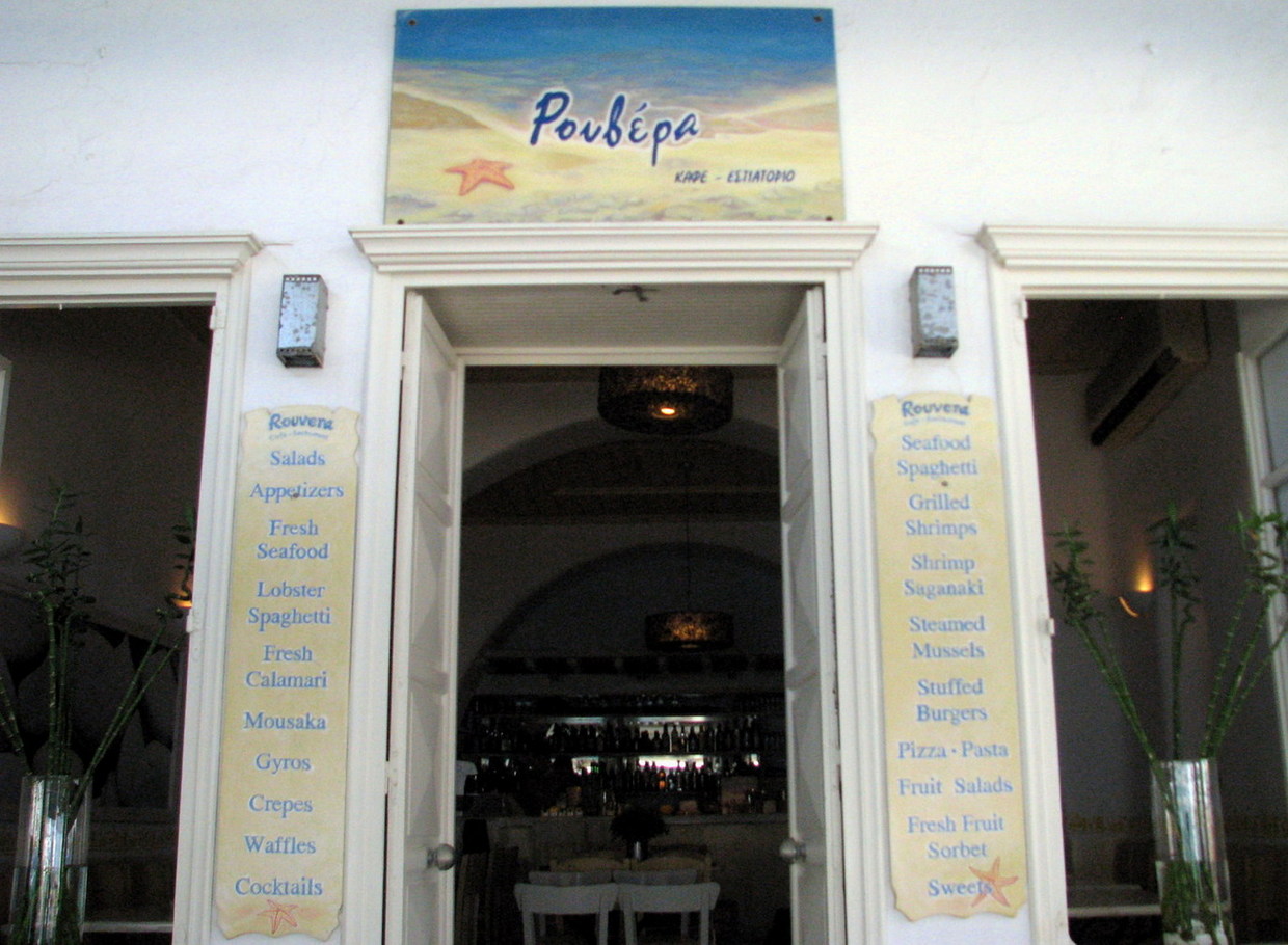 The restaurant-cafe "ROUVERA" is situated in the heart of Hora-town two steps from the sea!