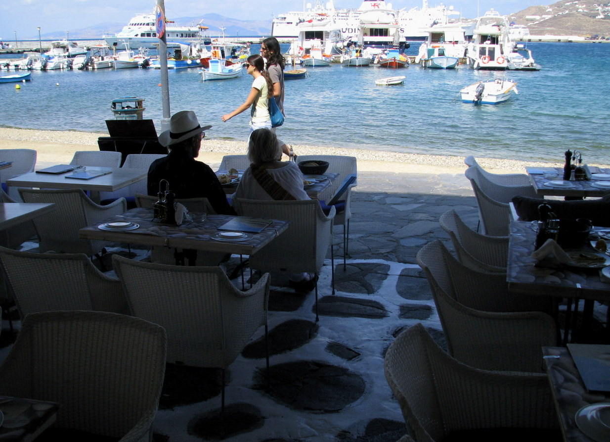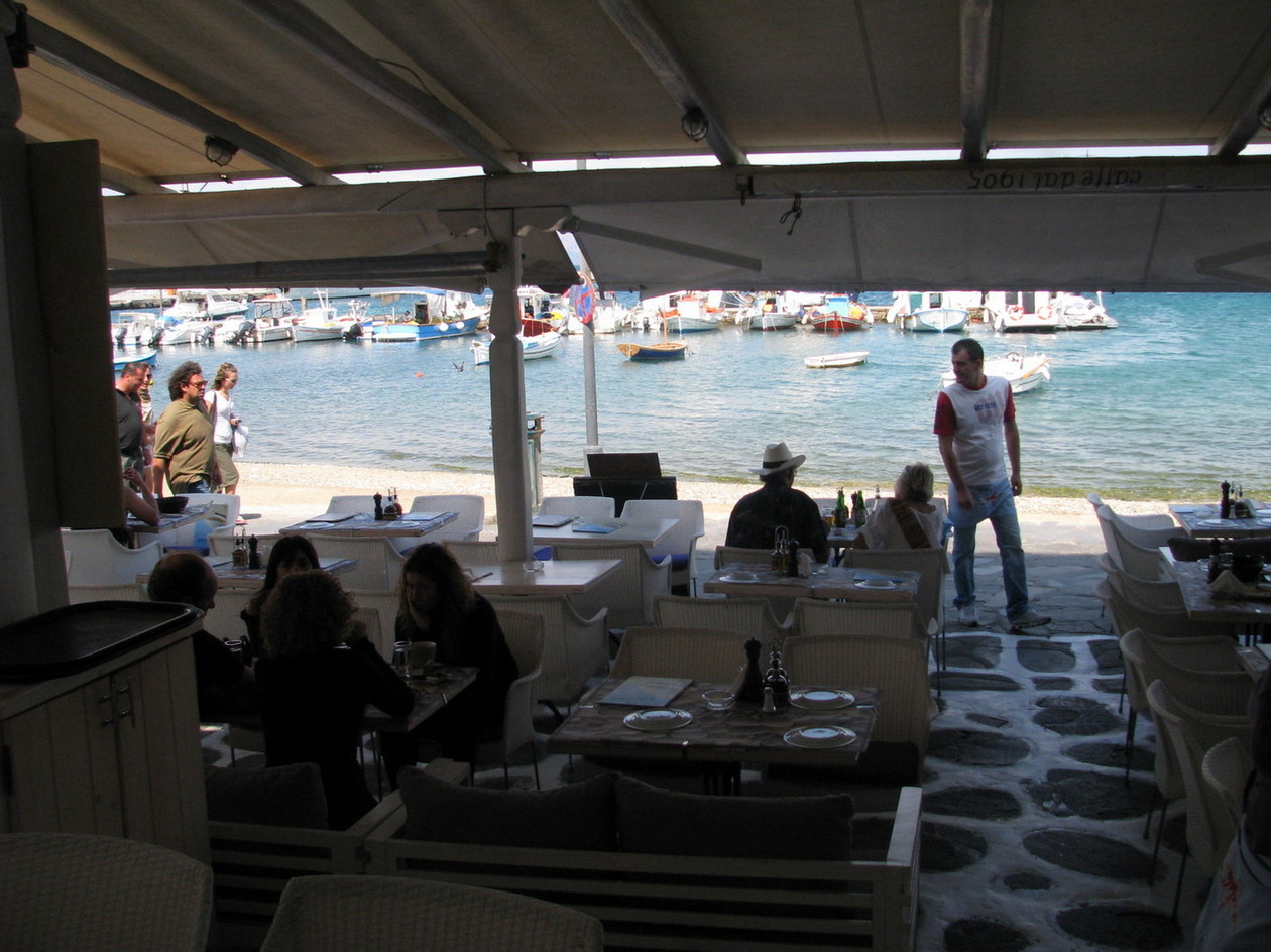 Visit us and enjoy a great breakfast with your coffee, tasty meat and fish varieties, home made food, delicious desserts and drinks or evening coctails overlooking the port of Mykonos.