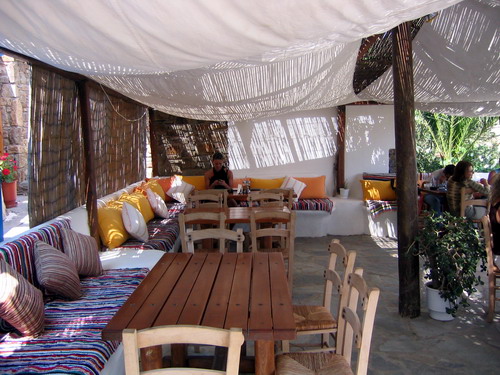 Taroula’s restaurant, a few steps from the beach of Panormos, on a hill in the left side of the beach, is a discreet place that tourists who think Mykonos of a stop in their vacations, ignore. Nevertheless, the experts will confirm that this restaurant has an excellent reputation.