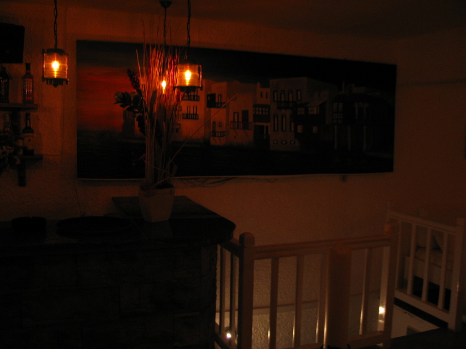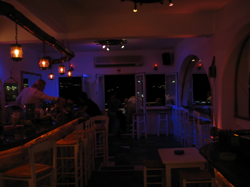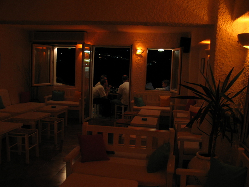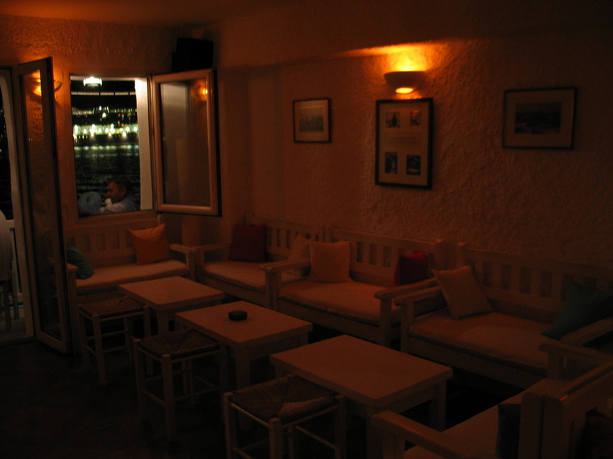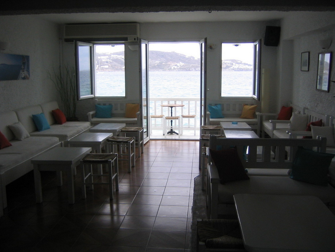 Decorated in a comfortable Mediterranean style, the upstairs features an outside terrace with tables and chairs overlooking the Aegean Sea, and some of the best fresh fruit drinks on the island. At night there’s DJ and dancing.