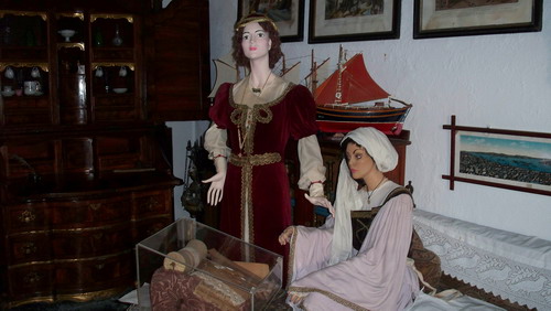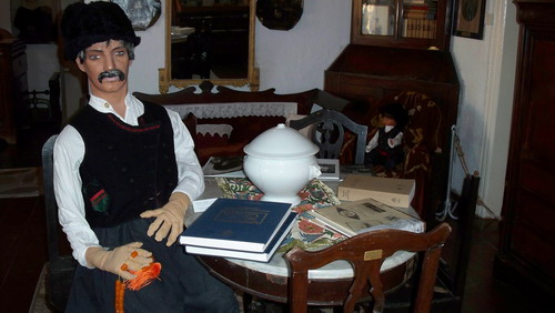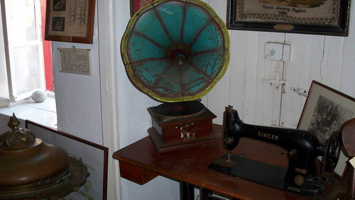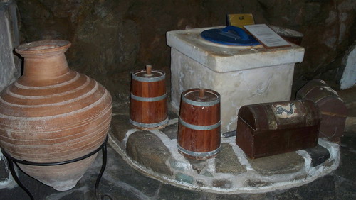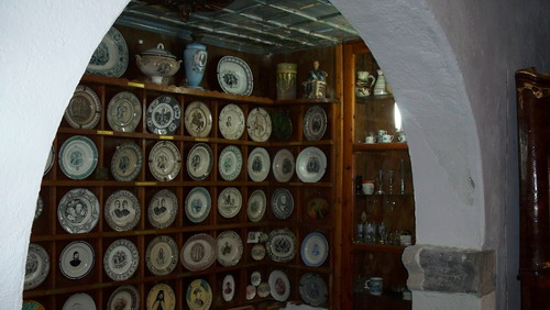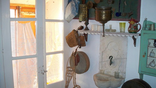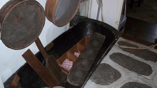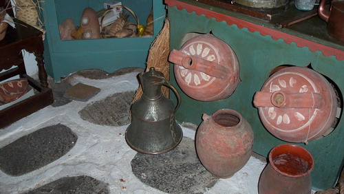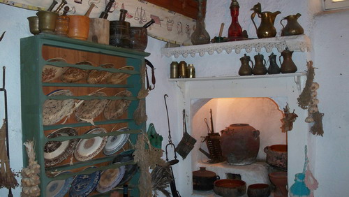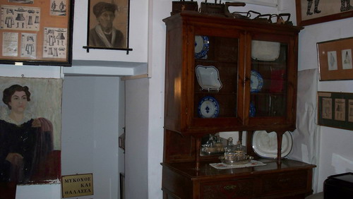 There are exposed museum articles sorted by subject. Keys and locks collections, handwoven tapestries, painted plates, old weights and measures, traditional Cycladic sculptures and lighting devices ranging from the ancient oil to the kerosene lamp. Obsedian tools and weapons representing the interior of a 19th century middle class drawing room.19th century bedroom. A 19th century kitchen.