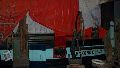 Around the "Mermelechas well"- a known pirate there are large and small traditional Aegean ship models, cannons and pictures of old Mykonian sailing and steamships.