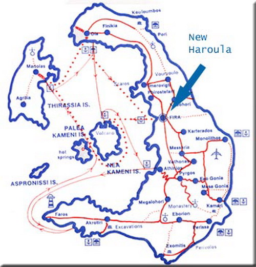 New Haroula is located in the capital of Santorini, Fira. In a peaceful side just 150m from the center.
