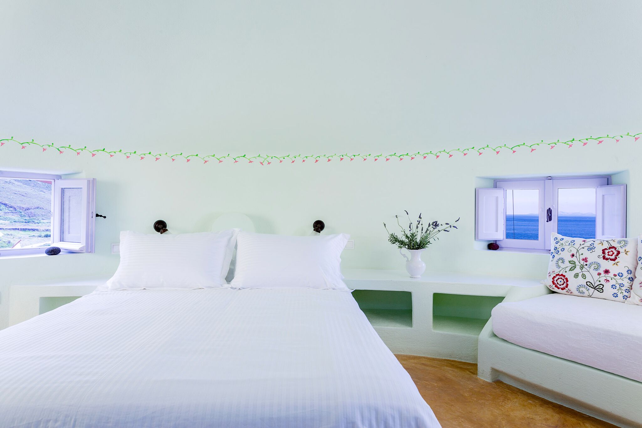 Each Santorini Windmill Villa is totally independent, equipped with a private pool, Jacuzzi tubes, terrace, flower garden, private entrance, parking space. It can accommodate uo to 5 persons and it is the ideal resort for honeymoon couples, group of friends, as well as perfectly safe for families with children.