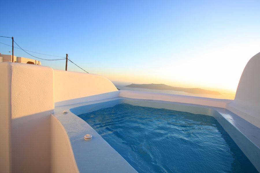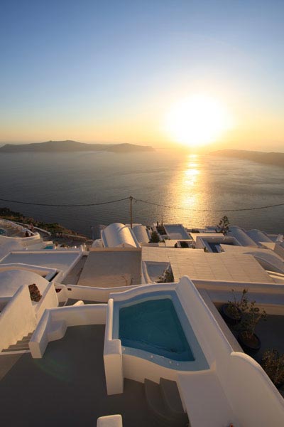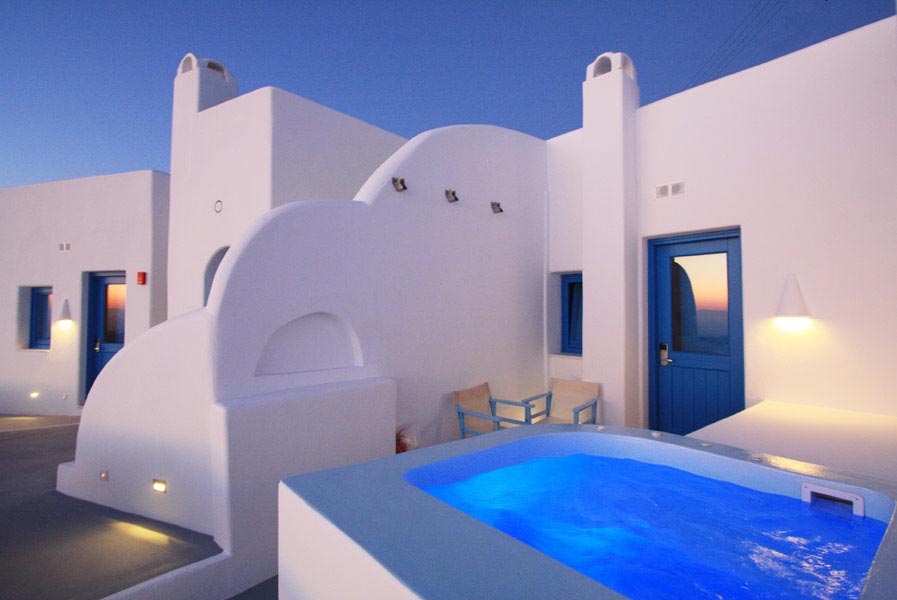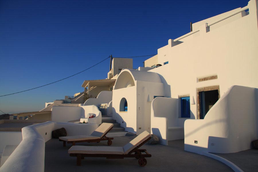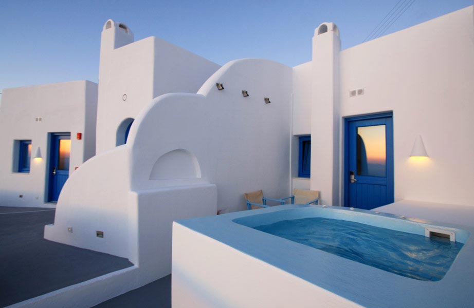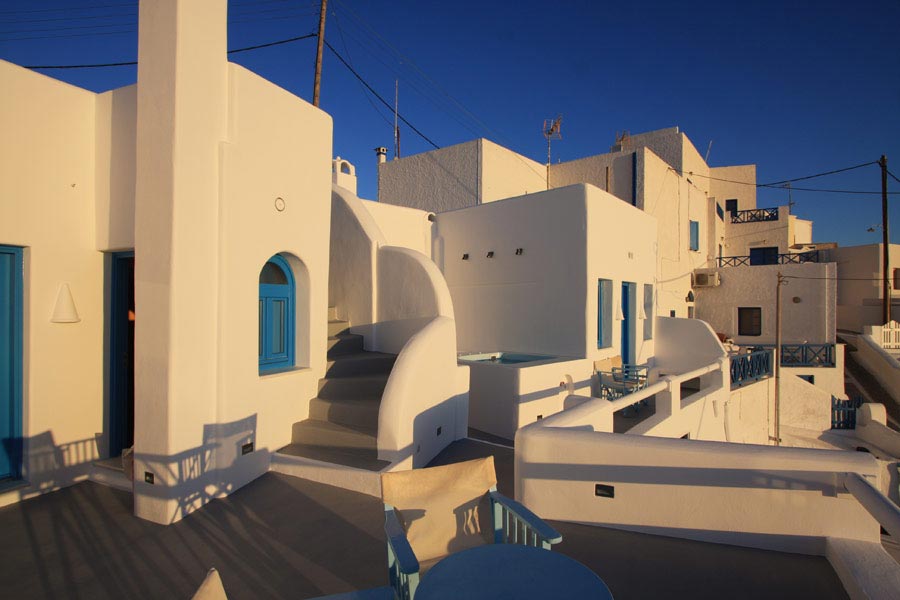 The privileged location of the Abyssanto Suites & SPA, makes it the ideal destination for those wishing to relax and enjoy the magnificent view to the sunset and the volcano. It is the best honeymoon location for newlyweds, as it offers a tranquil and romantic scenery and a Honeymoon Suite, the perfect outset for the first steps in a couple's life. The complex is situated just a few meters away from the municipal parking. From there, you will only have to climb up the 14 stairs in order to reach the hotel.