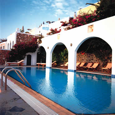 The charming mix of Cycladitic architecture, elecance, space and privacy composes a unique level of comfort and convenience for the guests. True to its name "Agali" that means "embracement", the warm family hospitality combined with all today's amenities is the ideal place to experience unforgetable holidays. Situated in a small picturesque village, called Firostefani, just 10 minutes away from the center of Fira overlooking the Aegean Sea with the Volcano and the Caldera, makes it the ideal place to enjoy magnificent sunsets.
