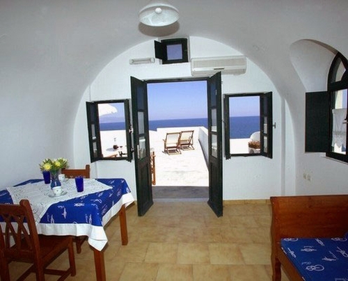 The area is well known for its natural black-sand coast and its vineyards where the renowned Santorinean wine is cultivated. The complex is 20 m from the bus-stop and 4 km from the village of Oia. We arrange taxi reservations or car rentals for arrival or departure transfers for arrival or departure transfers from the (air) port upon request.