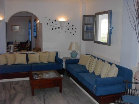 Atlantis Beach Villa has a privileged position at the black sandy beach of Perivolos, a whisker away from the sea.