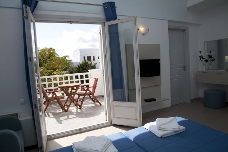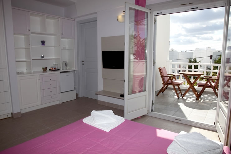 There is also a free parking lot at the back side of the building. All four rooms have large balconies, air-conditioning, central heating, satellite TV and radio, mini fridge, electric kettle, hair-dryer, safe, telephone and free wireless network connection (Wi-Fi).