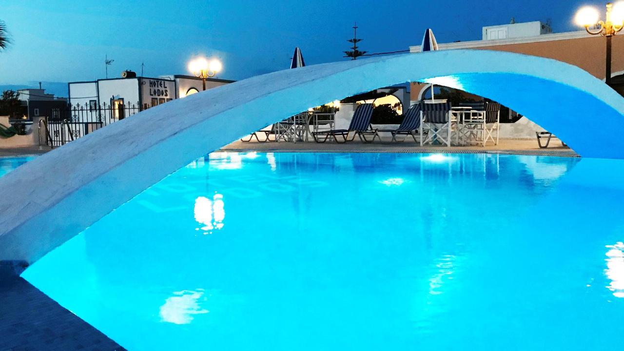 The common areas of the facility (pool, reception, seating) used in association with the Hotel Lodos, accessible only at summer.