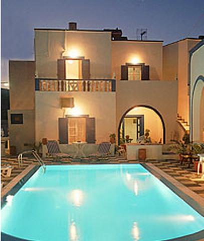 Traditionally Cycladic, with a small courtyard, garden statuettes, pockets of flowers, stone chequered paths & curved archways, this Santorini hotel is quite charming. Modest hotel rates coupled with easy access to Fira town center make Villa Alizea an obvious choice for economical & yet comfortable holidays on Santorini Island.