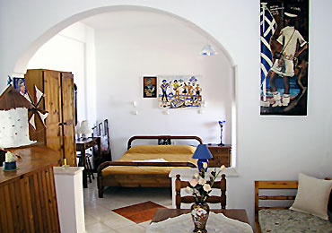 Carefully tended plants and arbours make the terraces an oasis where guests can enjoy breakfast or relax later in the day. Toula Koronios offers her guests traditional Greek hospitality, giving tips on sites to visit, current cultural events, and information about the island. You will find a free parking area outside the hotel.