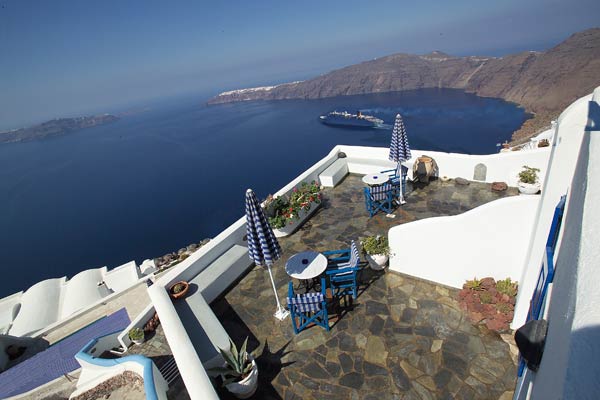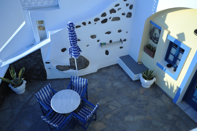 The traditional architecture, the interior comfort and large private balconies, allowing the visitor to enjoy the enchanting unique landscape of Caldera, of Volcano, and the famous Sunset.