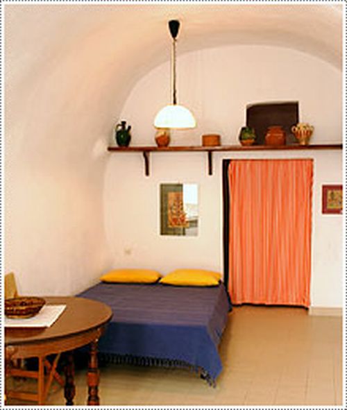 Villa Marina in Santorini sits on the edge of the Caldera in Oia. A charming Cycladic house, with typical domed roofs and high ceilings, Villa Marina is spacious enough to accommodate 10 persons. There are two bedrooms and a large living room with sofa beds. Additional features include a fully equipped kitchen, Satellite TV, 2 shower rooms and a private veranda with extraordinarily breathtaking views of the Volcano, the surrounding islands, the traditional hillside settlement of Oia village and the deep blue Aegean sea.