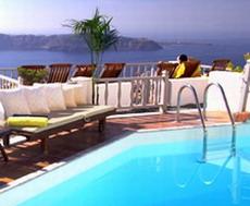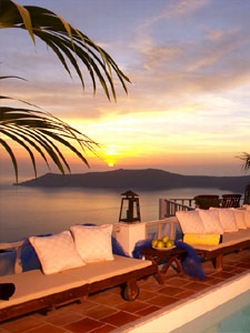Built 350m above sea level, offers to its guests the most fascinating view of the volcano and the little islands of the Aegean Sea, as well as of the dazzling sunset.