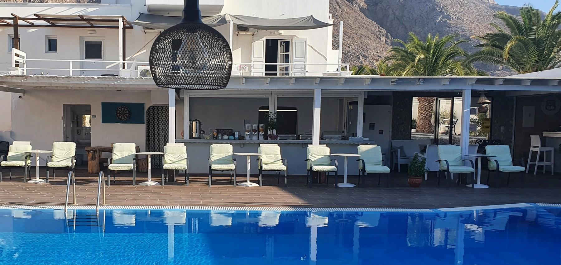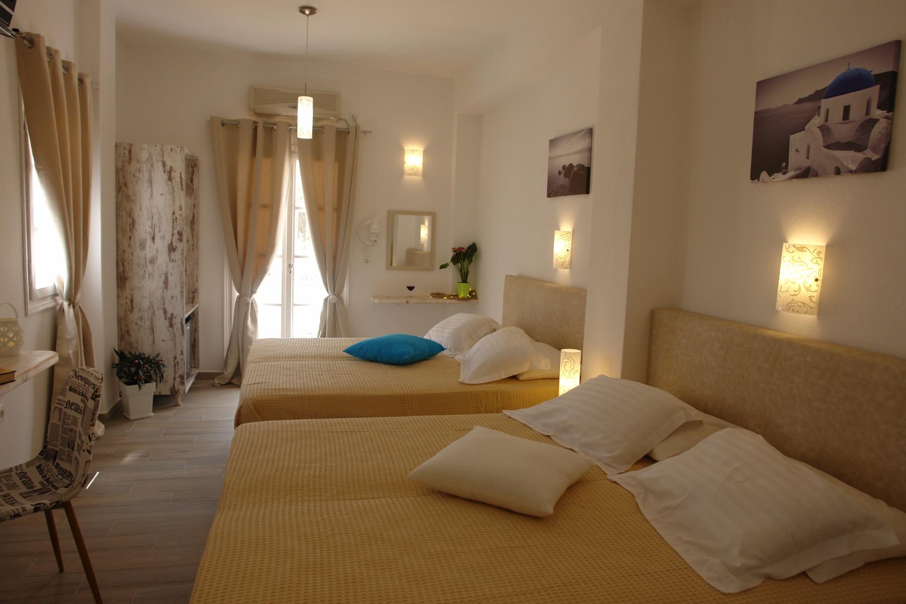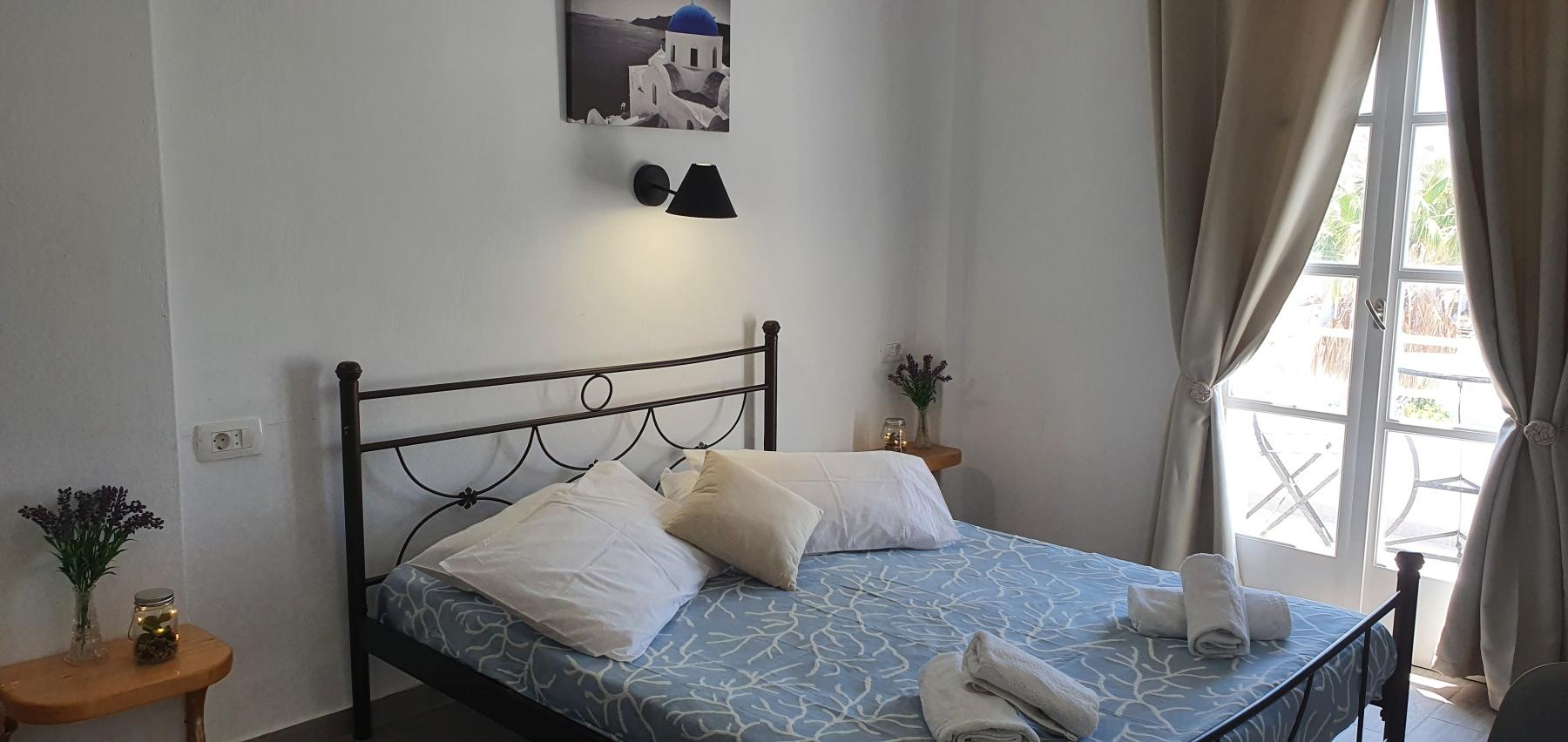 In Santorini, the island of lava, there is the wonderful and long black beach of Perissa. There, you will find Kalipso Villas. Our traditional complex consists of lovely and spacious rooms and studios with large balconies, private bathrooms, air-conditioning, safe box and TV. All rooms are equipped with small fridge, while the studios have fully-equipped kitchen.