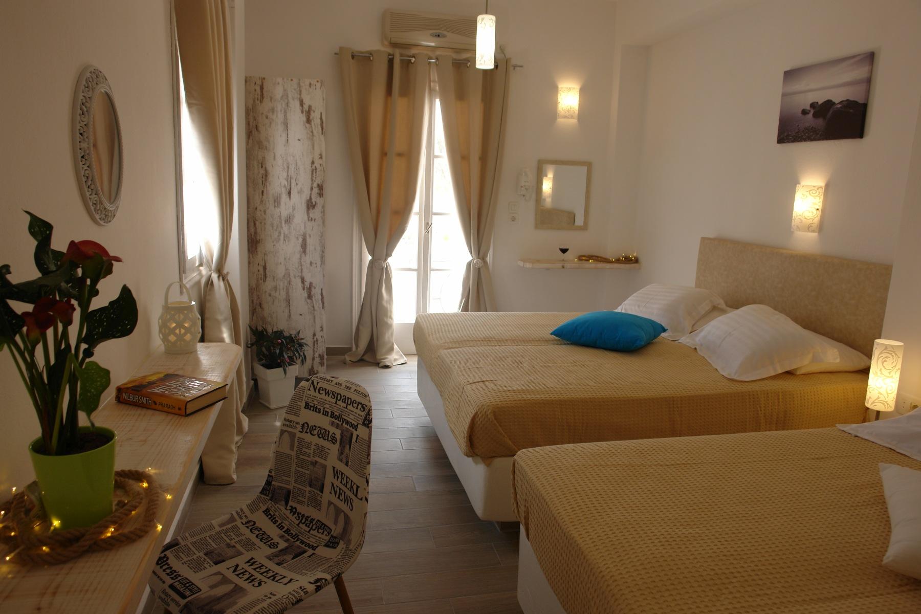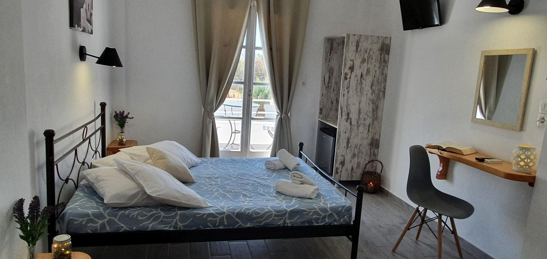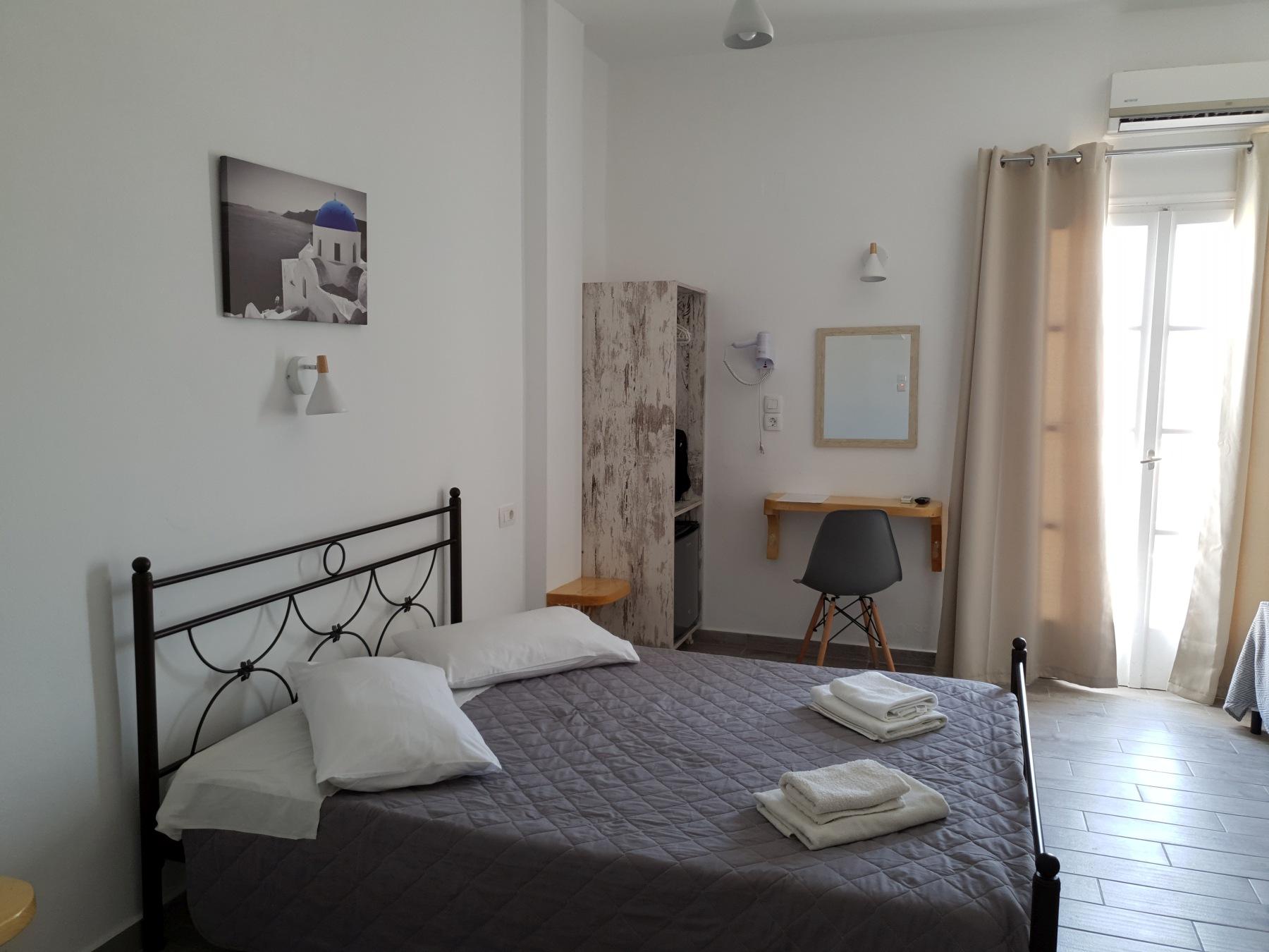 In Santorini, the island of lava, there is the wonderful and long black beach of Perissa. There, you will find Kalipso Villas. Our traditional complex consists of lovely and spacious rooms and studios with large balconies, private bathrooms, air-conditioning, safe box and TV. All rooms are equipped with small fridge, while the studios have fully-equipped kitchen.