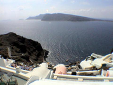 Right next to the church of Saint George, offering a magnificent view of the volcano, as they are hanging over the Caldera Gulf.