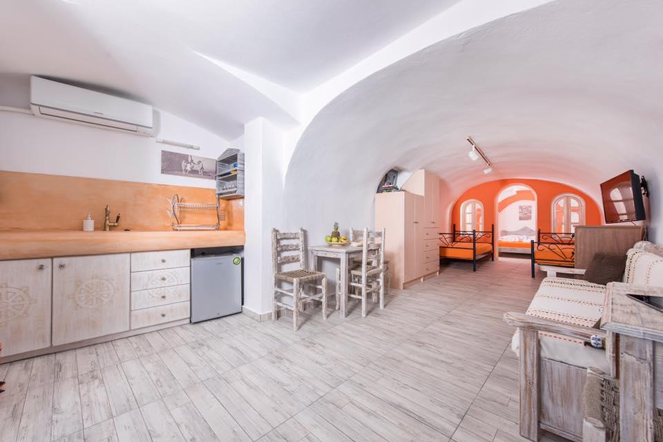 Maryloujohn villas features six studios and two apartments. All the studios have view to the aegean sea, where three of them have view in the volcano and the other three have view in the sun set side. One of them apartments is traditional cave house and the other one is traditional house with loft.