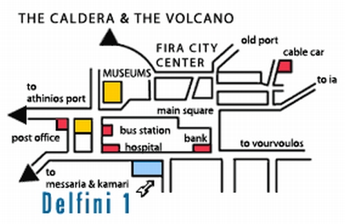 In the main town Fira on the island of Santorini you can find Delfini 1 hotel complex. Located on the parallel road to the main square, & within walking distance to the famous Santorini Caldera, the hotel offers easy access to the local sites & places of entertainment, being only a 3 minute walk to the main square.