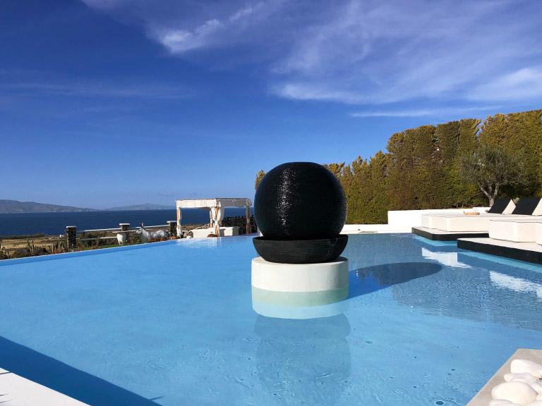 Every villa has its private yard with dining area to enjoy alfresco dining, garden and private heated hydro massage spa. Three swimming pools in combination with the perfect sea and sunset views, will captivate you on the premises. The main outdoor area offers lots of space and facilities for many persons, such as a marvelous open fire pit, and will fill you with lots of happy moments. The luxury combined with the ultimate privacy offers an unforgettable stay and a unique experience.