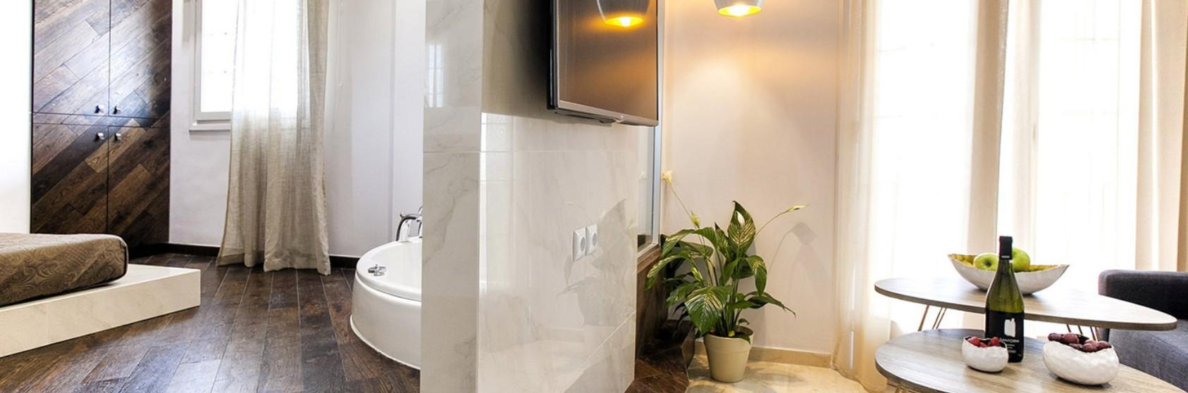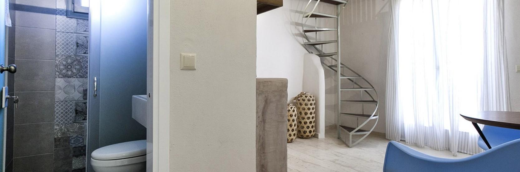 Our hotel features 11 rooms — 1 suite, 1 superior deluxe with a small living room, 2 two-storey studios with fully equipped kitchen, 3 deluxe doubles, 2 comfort doubles and 2 premier doubles with 2 single beds – all of them noted for their exquisite aesthetic and luxury, Cycladic character and minimalist decor. The hotel has a swimming pool and a bar-restaurant, where guests can taste our inspired culinary creations. We also provide comprehensive wedding reception services, with exceptional catering choices, original decorations, ambient lighting etc., which guarantee a memorable wedding experience.