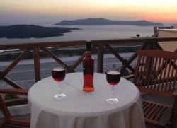 The view from the breakfast room - cafeteria - snack bar, is impressive from here can enjoy their coffee, or drink admiring exactly opposite, »« emerging from the sea, the majestic volcano. In the background lies the island Thirasia, right below the traditional town of OIA.
