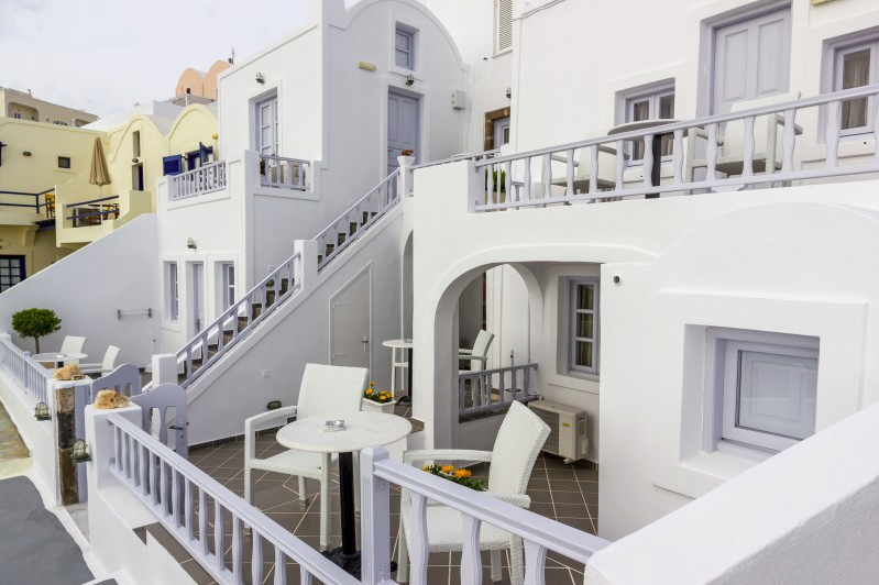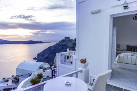 Santorini View Studios is overlooking the caldera of Santorini, situated in Firostefani in a quiet and charming place, just 1 kilometre from Fira, the island's Center. The studios offer sunny balconies with panoramic views of the volcano and the caldera where you can relax watching the beautiful sunset of Santorini.
