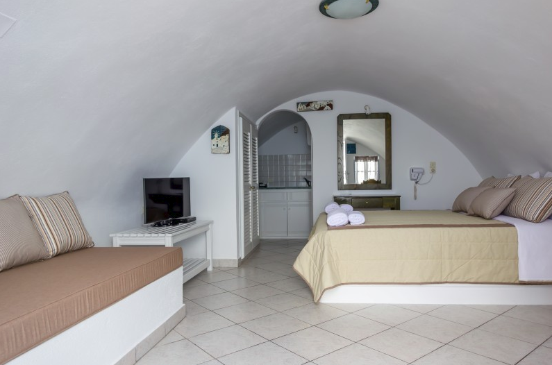 The rooms are characterized by the traditional architecture of Santorini with vaulted ceilings and elegant furnishings. They are equipped with air conditioning, LCD satellite TV, fully equipped kitchenettes and refrigerators. WI FI internet is provided in all areas of the hotel fir free. Access to Santorini View Studios is easy as it is located very close to the main pedestrian street of the village and the bus stop. Nearby there is free public parking, restaurants, coffee shops, mini market, tourist office and shops. Enjoy unforgettable holidays ...
