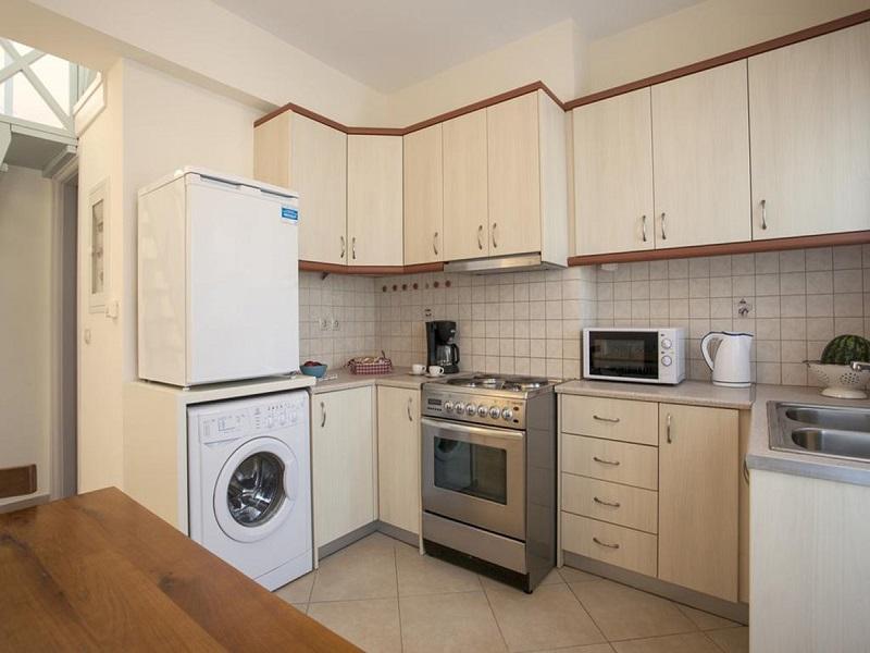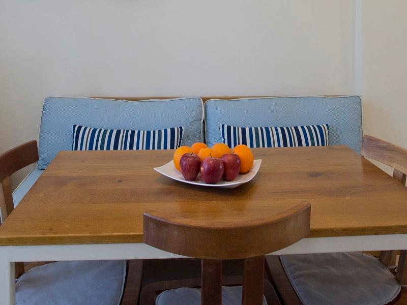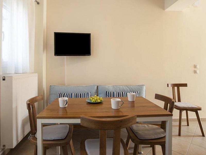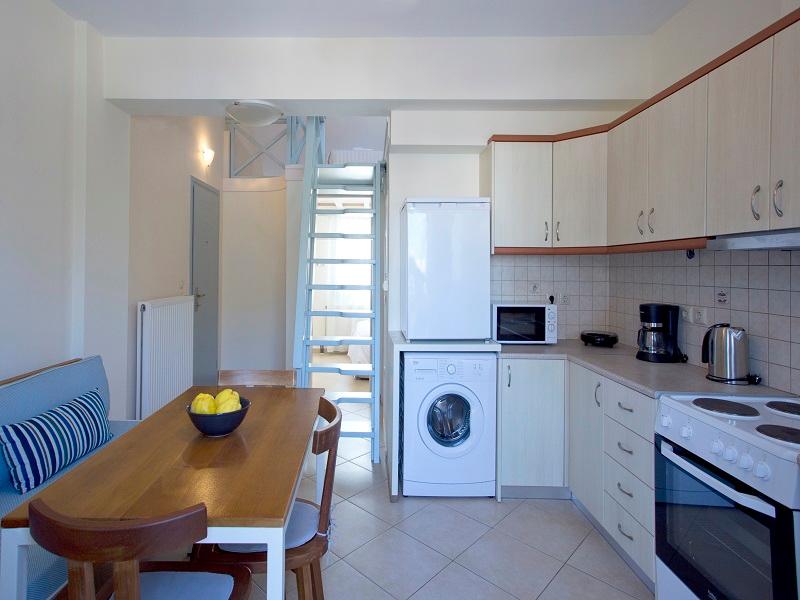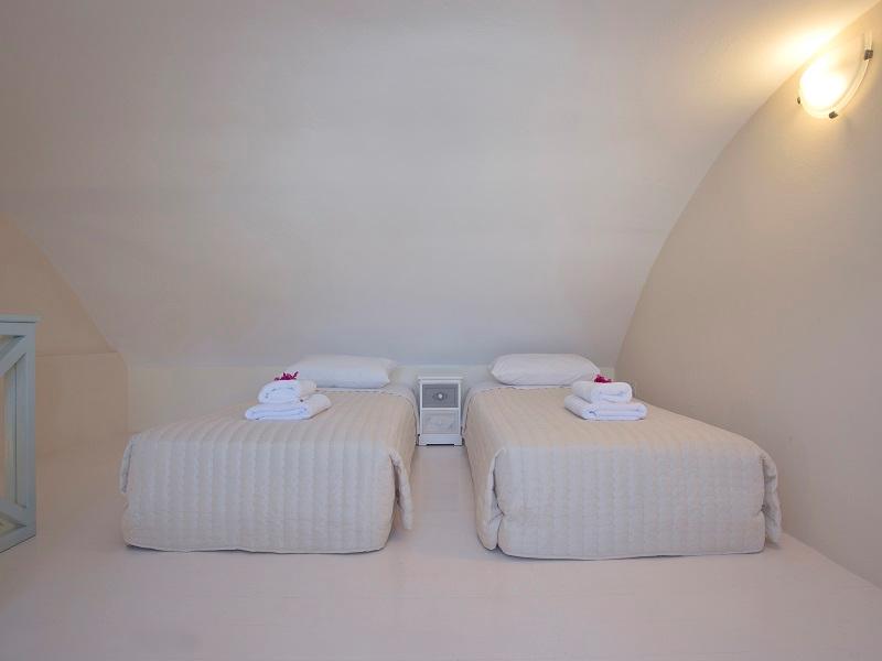 The complex consists of four, attractively furnished, maisonette-style apartments, on the first floor of a handsome house built according to the traditional Santorinian architecture. Each Home disposes one bedroom with king size bed, a cozy living room with exceptionally well-fitted kitchen, dining table with chairs and a sofa bed, and a stylish wooden loft with vaulted ceiling equipped with two single beds. Outside, a private small balcony comes with a coffee table and chairs, offering views - from a distance - of the Aegean Sea and part of Messaria’ s flatland vineyards .