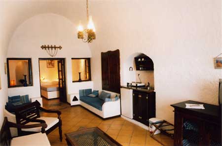 Each of our individually designed apartments, suites & studios has been furnished with care and is equipped with atmosphere-controlled bathroom with hair dryer (some two bedroom suites & apartments have two bathrooms), kitchenette, safety-deposit box, telephone, TV and veranda with view to the volcano and astonishing Santorini sunset.