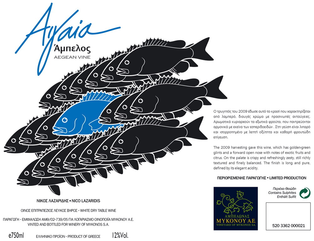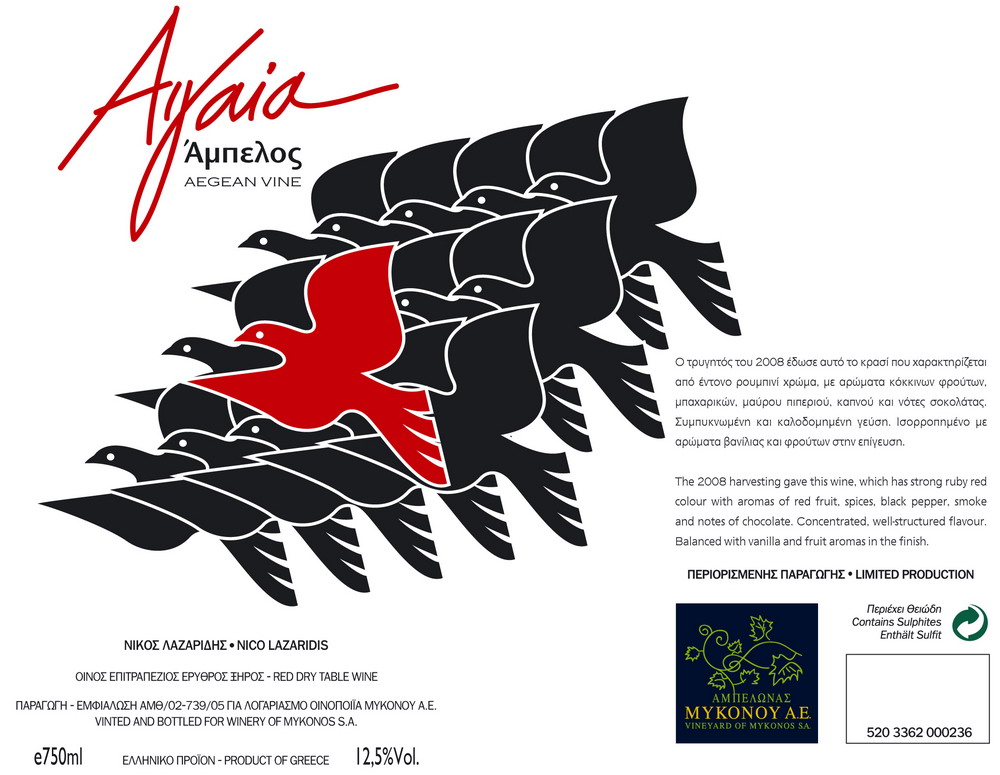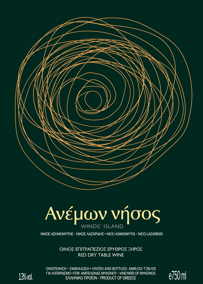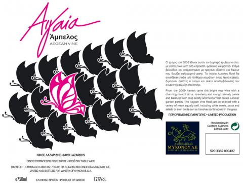 In Mykonos are being cultivated varieties from the Aegean Sea (Assyrtiko, Athiri, Aidani, Monemvasia and Mandilaria) and the foreign varieties Cabernet Sauvignon & Syrah. The vineyards are in a row with low elevation because of strong winds.