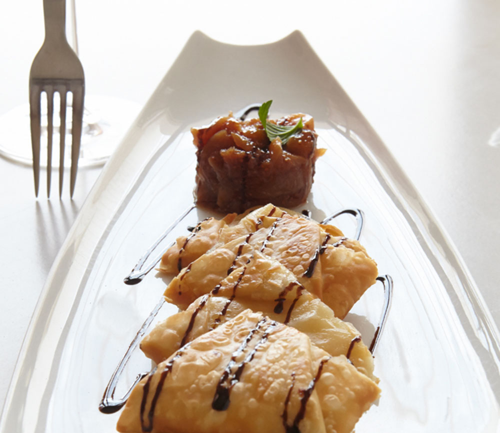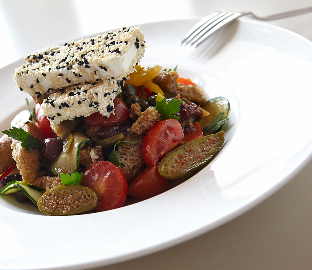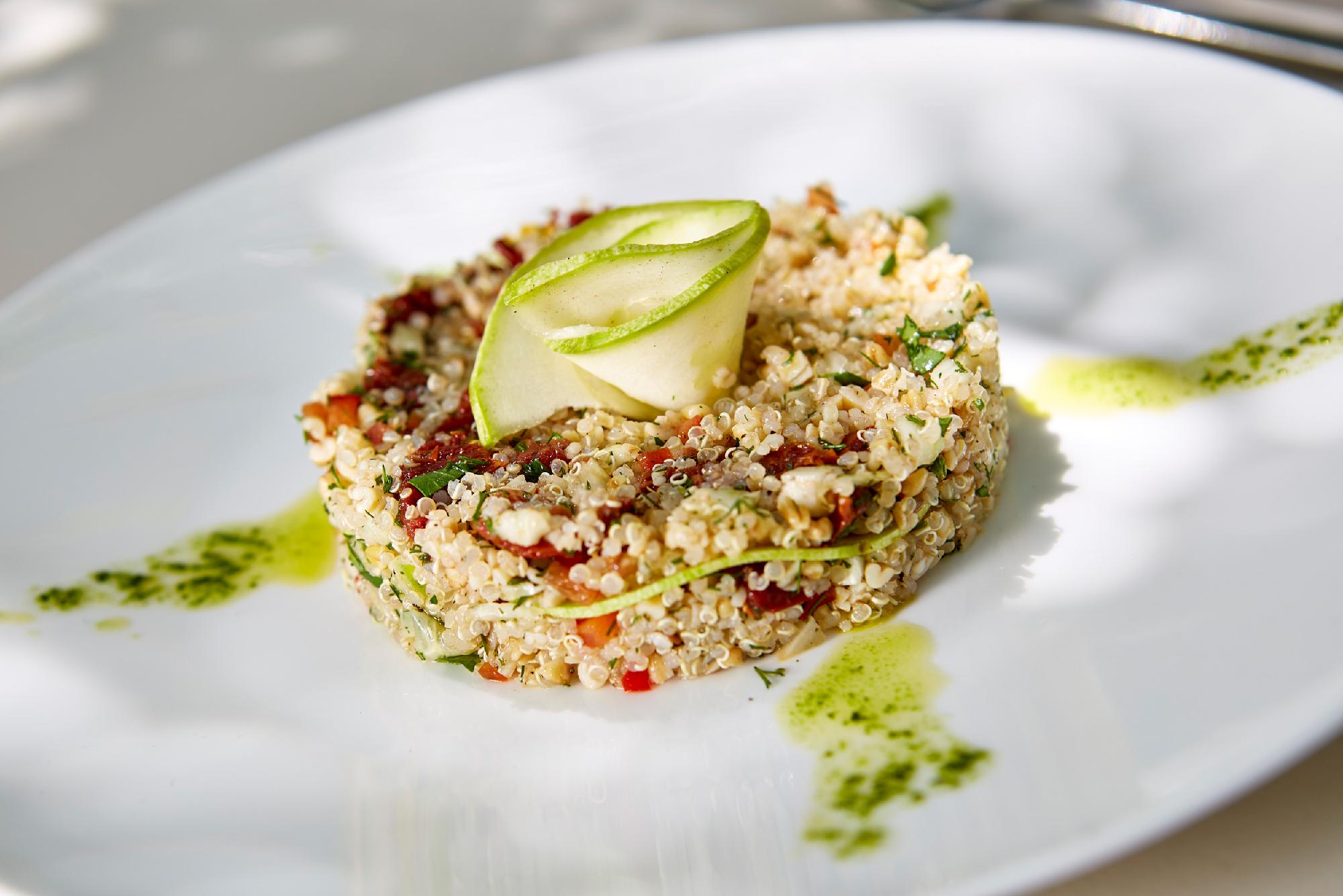 We create our menu dishes with Greek products, often PDO (Protected Destination of Origin), as we are particularly inspired by local products, like the famous Santorini cherry tomatoes, round zucchinis, white eggplants and fava.