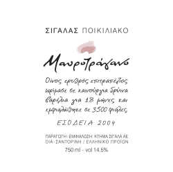 DETAILS: DRY RED WINE MAVROTRAGANO 100% CLASSIC RED VINIFICATION AGEING IN FRENCH OAK BARRELS FOR 18 MONTHS