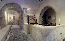 The building is located in Santorini Exo Gonia, stood in the earthquake of 1956 and continues to withstand the advent of the commercialization of everything. Made with the workmanship that has the need and art that led the taste of the old craftsmen Santorini, the old winery in the crank and potato dry volcanic soil and breathe with scarce and therefore valuable tis.Ta fruit wine press, the lina of must, the manganese, high-ceilings and arched the grid is still guards the seasons passed, but alive and tools ready to offer the Art of Wine. Every year loads of Assyrtiko, Mavrotragano, Athiri and voudomato, passing the doors of buildings in wicker baskets to give the most, perhaps, the object sharp, petraias land of Santorini: the wine. So we say that the Art Space is not simply to preserve the historical memory, but is struggling to keep alive and thriving reality. Each year, the fragrant as zymothei Grape must be converted into a dry, aromatic «nightwork». Another quantity of grape spreads for two weeks under the August sun intrusive and Grape must is transferred to wooden barrels for aging, to give after years valuable VisantoTo 1999, Art Space was ready to open in the new course. Antonios Nikolaos Argyros restoration sites respecting their original form. Put into operation and Winery «barkarise» for the journey of art ... More than 250 top Greek and foreign artists trusted their projects and soutirage spaces flooded with color and visual stunts. This was a charming idea became reality and captivating thousands of visitors passed the heavy doors to see a Santorini not rest in the glory of its unique beauty, or reassure the complacency of the past. Santorini An inspiring artists, but hosts and Art in all its manifestations.