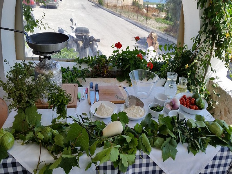 FEATURES DISHES: Santorini fava, tomato moussaka with white eggplants, Vine, small tomatoes which are based on our many dishes, homemade cheese chloro, rabbit cooked in wine the stew, wild boar, stuffer, the partridge hunting, garlic spaghetti with cherry tomatoes.