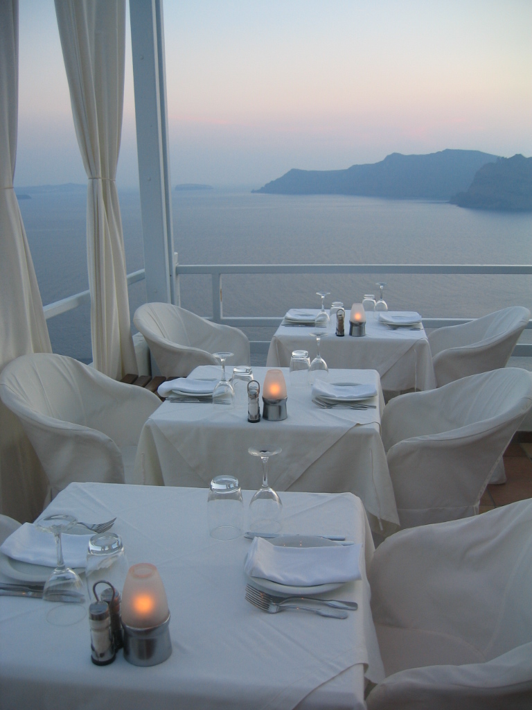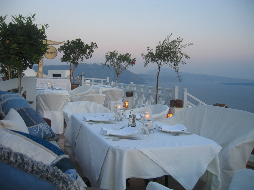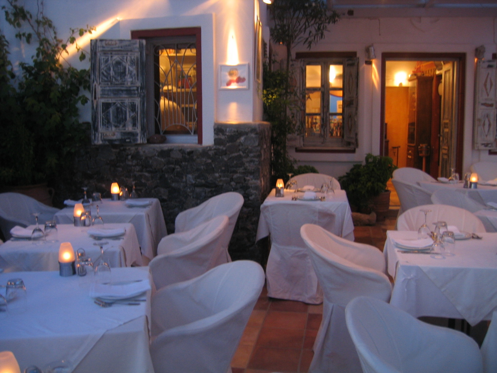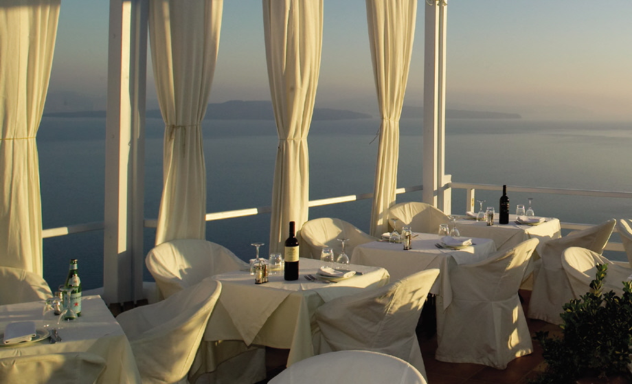 Christos Markozanes and Stavros Sigalas have created in the traditional settlement of Oia, this beautiful outdoor courtyard dining area where they present dishes of the Mediterranean cuisine blended with the local products giving emphasis in what they call Creative Greek Cuisine.