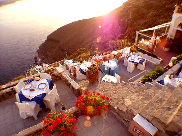 In the beautiful island of Santorini, the capital of Fira, just above the famous Caldera and close to ski lift about 100 m, is the gastronomic Restaurant KATRIN GALLERY.
